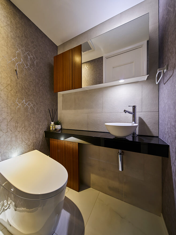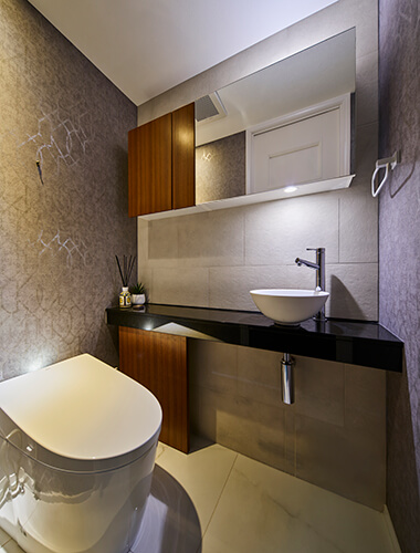 また、愛犬との暮らしに配慮し、当初はフローリングを予定していましたが、弊社の事例をご覧いただき、ペットにも負担の少ないタイルへ変更。ご自宅での検証を経て採用いただきました。さらに、照明はスマートフォンで操作できるシステムを導入するなど、細やかなご要望一つひとつにもお応えし、こだわりと想いを丁寧に形にしたリフォーム事例です。